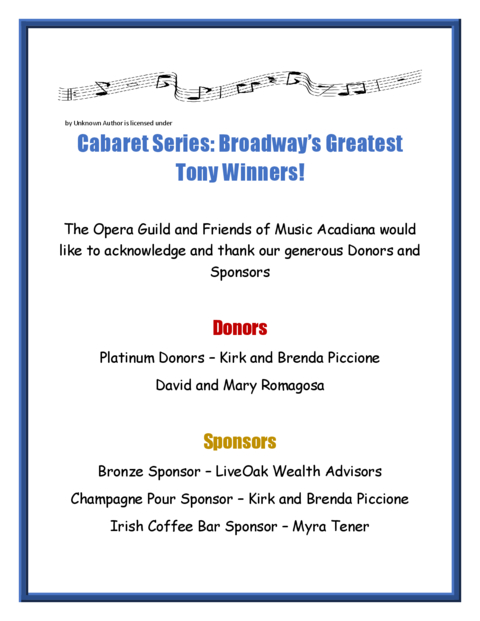 Sponsors of The Cabaret Series
